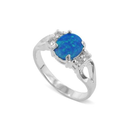 Oval Created Sparkling Blue Opal and White CZ Sterling Silver Ring(Sizes 5,6,7,8,9) Review