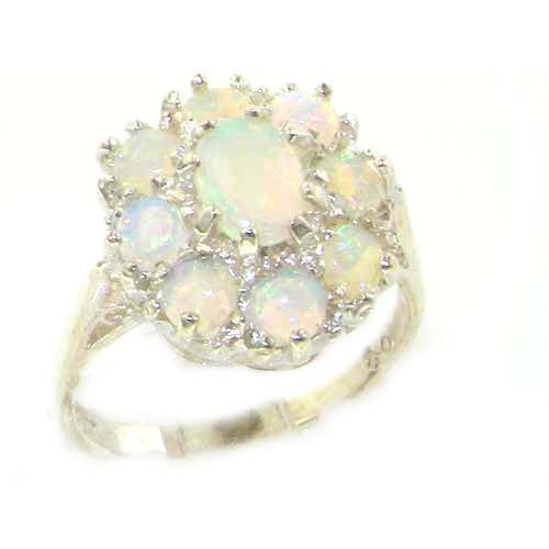 Luxury Ladies Solid Sterling Silver Natural Fiery Australian Opal Cluster Ring - Finger Sizes 5 to 12 Available Review