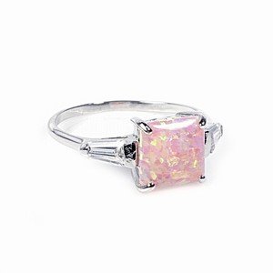 Ring W/ Lab Opal STERLING SILVER Sizes 5 to 9 Pink Square Review